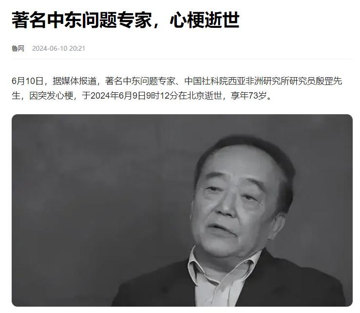 鲁网2024-06-10——著名中东问题专家,心梗逝世