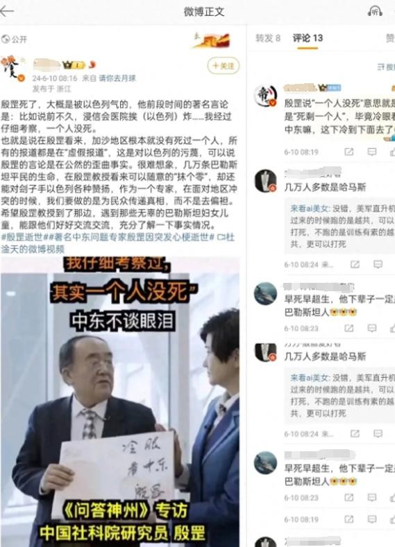 殷罡这种站在旁观者角度的评价,无疑是在羞辱巴勒斯坦的民众。