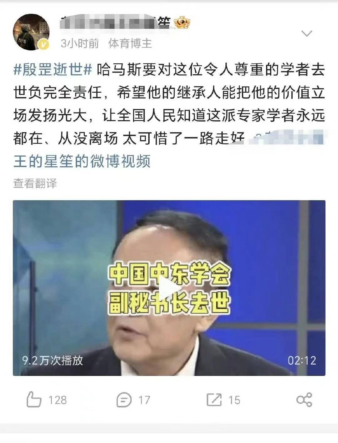 在他离世后,以色列驻华使馆对其进行了深刻的哀悼,既向殷罡的家人进行慰问,又夸赞了殷罡在中东问题上的建树。