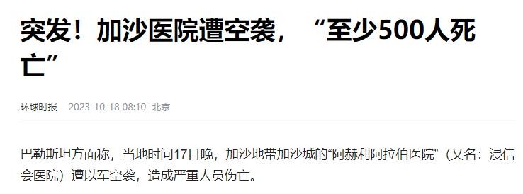 环球时报2023-10-18——突发!加沙医院遭空袭,“至少500人死亡”
