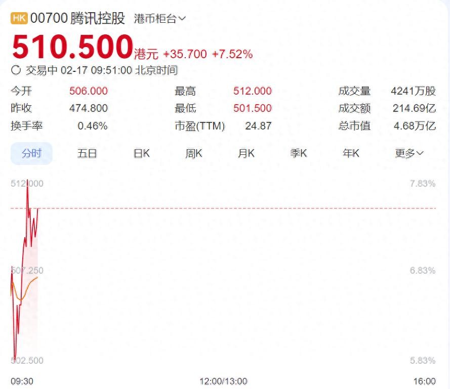 2月17日早盘,港股腾讯及相关概念股突然暴涨。