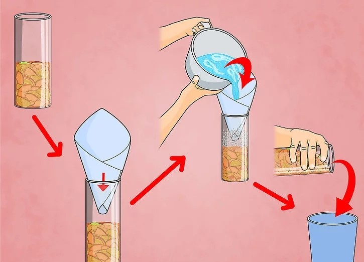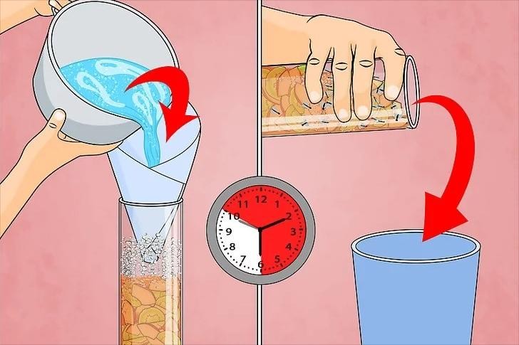 5、杀死被困住的果蝇。将温水和洗碗剂倒入一个容器中混匀。肥皂能降低水的表面张力,导致果蝇淹死。一两分钟后,倒掉瓶子里的东西。