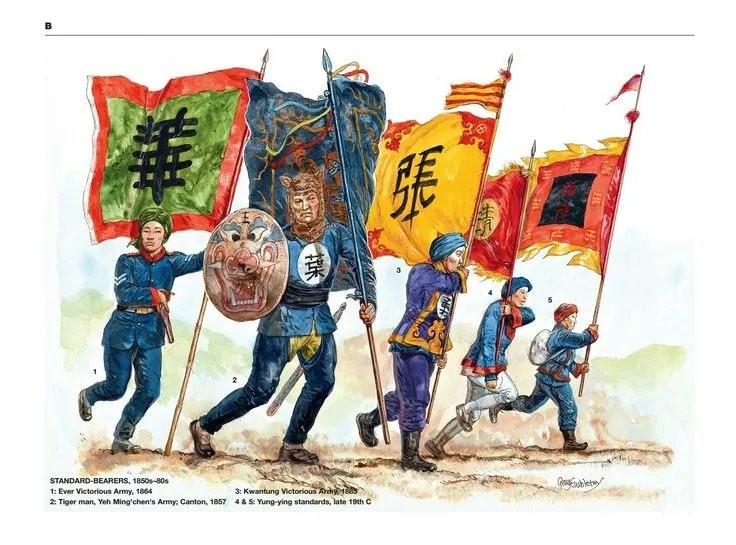 左一为“常胜军”军旗,那时候的老大是戈登的前任华尔