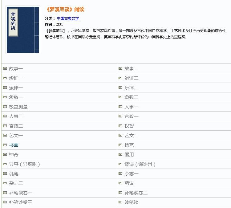 再认真一点,我找到《梦溪笔谈》在线阅读地址,点开所有章节,这本书真的主要是对古代科学技术的记载!想了想,但凡学过初中《历史》的也知道《梦溪笔谈》是本科学著作,难道是这些网文作者都是小学毕业?