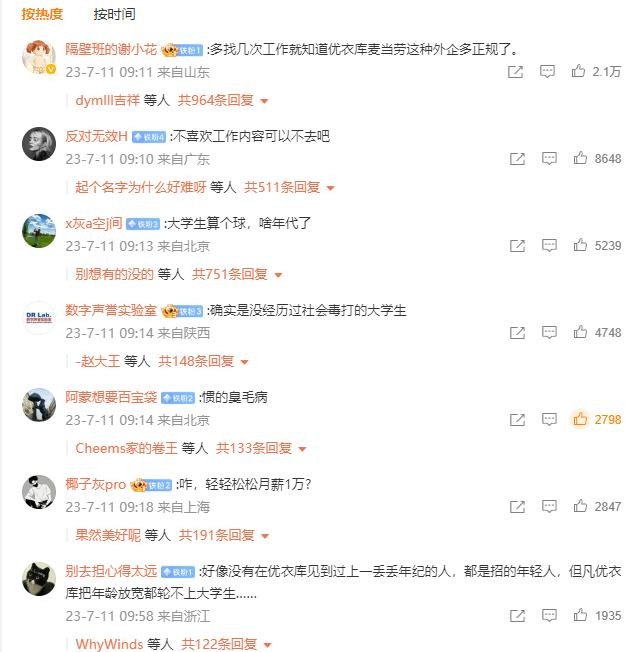 该名大学生的发文引起了不少网友的讨论,有网友表示“不喜欢工作内容可以不去”,也有网友表示“有一说一,优衣库时薪还可以吧......”也有网友站在另一边称“都挣得少,不问为什么工人待遇这么差”“评论区大多数都自动代入雇主......身为雇员但就爱操着雇主的心......”