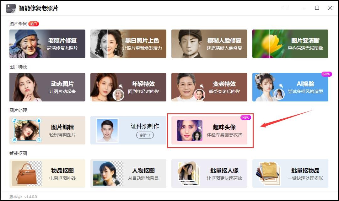 如果你想要更快地设计出头像,那么可以使用在线头像生成器,例如【智能修复老照片】。这是一款多功能的图像处理软件,它提供了许多有趣的滤镜和效果,可以让你的头像看起来更加有趣。在智能修复老照片中,你可以使用各种滤镜和效果来调整图像的颜色、纹理、亮度等等。它还提供了一些文本工具和形状工具,帮助你更好地制作出想要的头像。