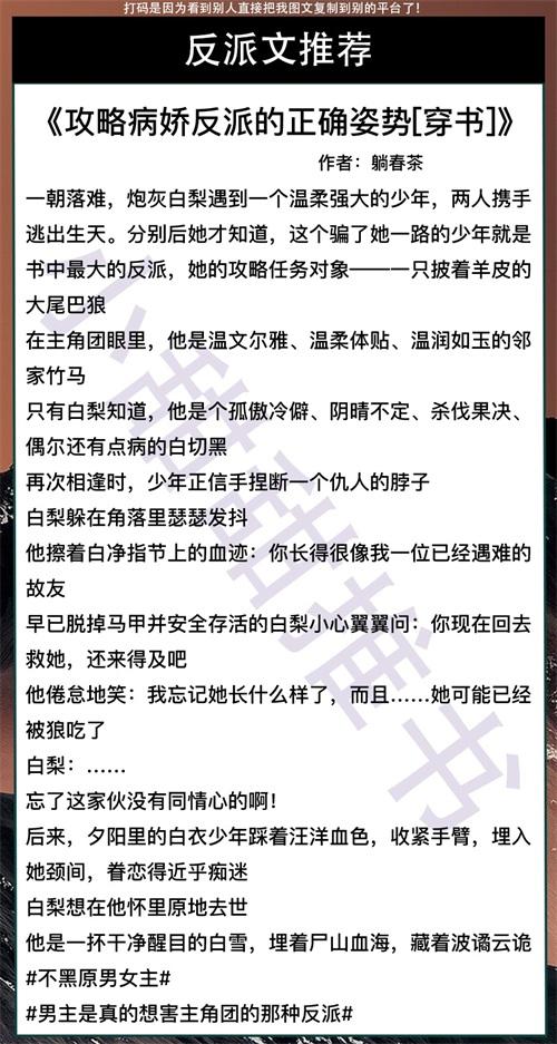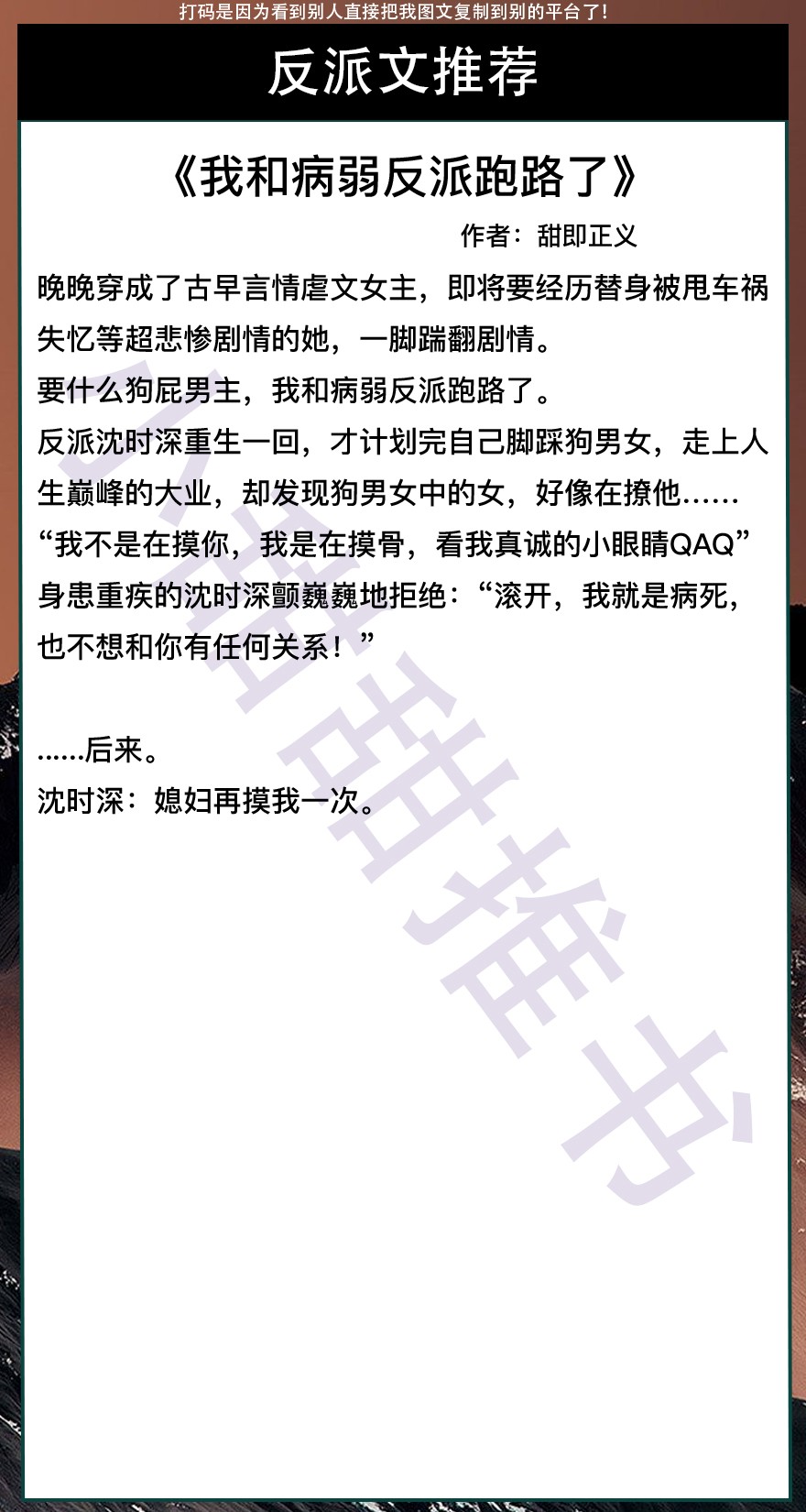 10本反派文推荐《我和病弱反派跑路了》《穿成反派大佬的白月光》