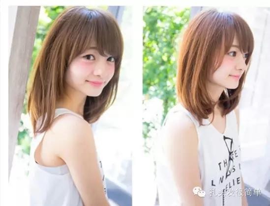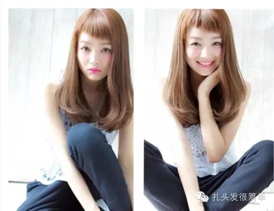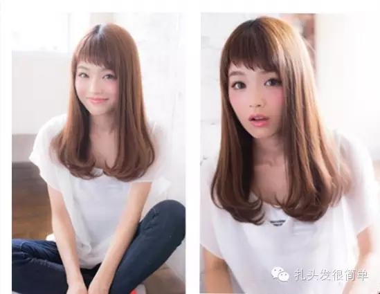 发型点评:可爱的韩式斜刘海加上中长内扣直发,轻而易举就能打造出校园青春的少女感,然后把棕色染发的头发自然披肩,瞬间就能助mm散发出清新与纯美的气质来。