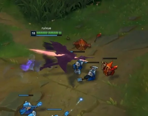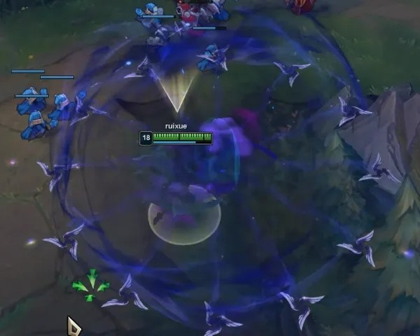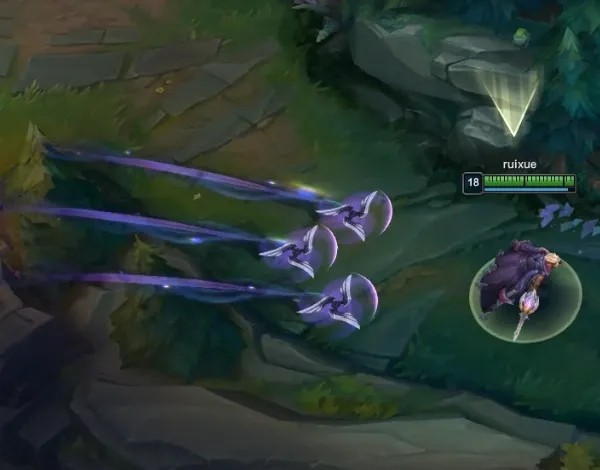 再来就是泰隆的W技能了,这个技能是泰隆的灵魂技能,无论是对线消耗还是后期秒人,W技能都是不可或缺的。黑木泰隆的所有特效都是以紫色为基础的,W技能也不例外