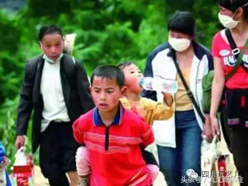 一个从汶川县灾区步行出来的孩子。