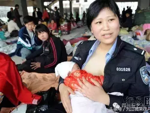 四川江油县公安局一名普通的民警将她自己才6个月大同样需要母乳喂养的孩子交给了父母照料。却义务的为一些急需哺乳的地震灾区孤儿喂奶。