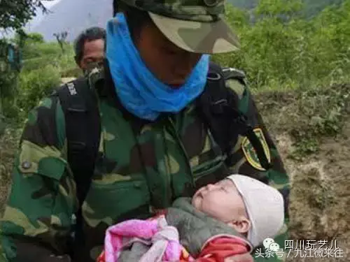 这个小孩子叫郎真,他被救出来后,在担架上给战士们敬了一个礼!