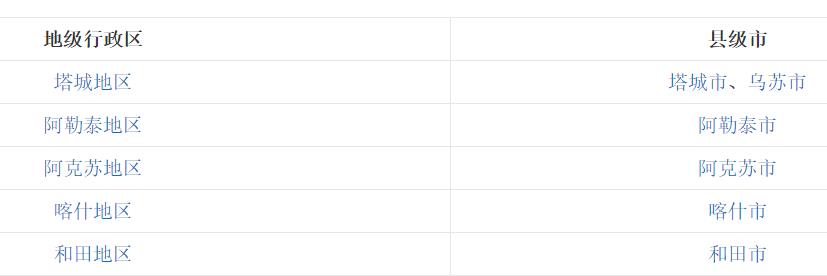 4、地区辖县级市:目前只在新疆维吾尔自治区还存在,后续会陆续撤地设市。