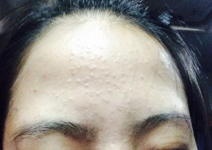 额头一看是很光滑,但是用手摸,或看侧面却又坑坑洼洼,还能挤出黄白色颗粒。螨虫不断啃食细胞,排出的老旧废弃物慢慢堵塞毛孔处,造成排泄不畅,慢慢推积形成了粉刺疙瘩。
