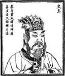 商末西方诸侯之长。姬姓,名昌。 公亶父之孙,季历之子。传说公亶父见 少子季历和昌贤德,想传位给他们,季 历的两兄太伯、仲雍为让位奔于荆蛮。 公亶父死,季历继位,后又传位于昌。 昌即位后,礼贤下士,得太颠、闵夭、 散宜生、鬻熊、辛甲等臣,周国势日强。 昌和九侯(或作鬼侯)、鄂侯(或作邢 侯)一起,任商朝三公。商王纣杀九侯、鄂侯,昌不满,为祟侯虎所潛,被 囚于羡里(今河南汤阴北)。得释后, 昌向商献洛西之地,请除炮烙酷刑,得 任西伯即西方诸侯之长。