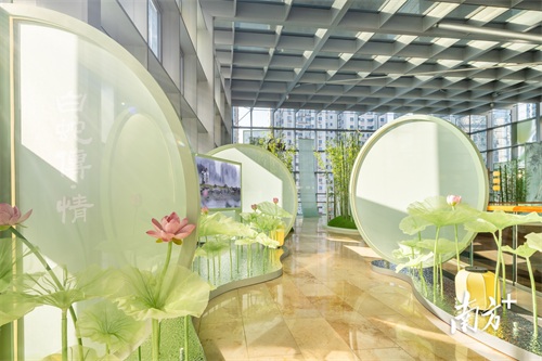 太古汇L3层南玻璃盒被打造成了一座充满东方写意之美的“穿粤”空间。青年艺术家吴鸣受邀为该主题展布展,通过虚实结合的手法和中式传统建筑美学风格的空间营造,生动还原了戏剧场景,让《白蛇传》这一流传千年的传说照进了现实。