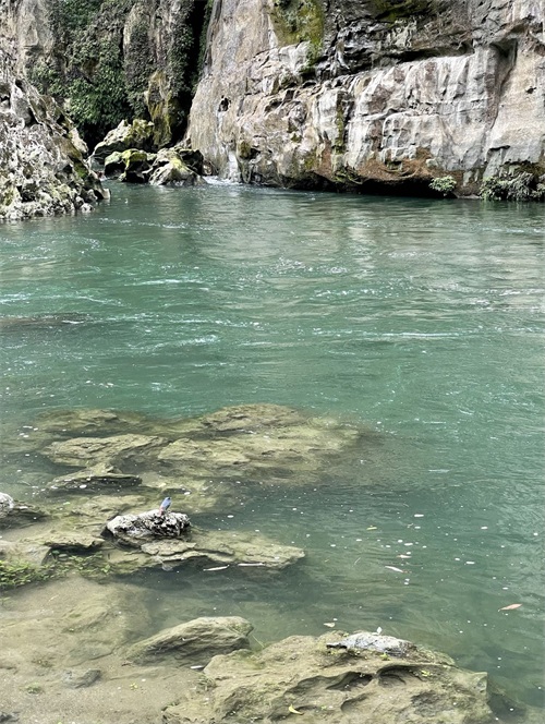 在马岭河峡谷游览,可感受大自然的鬼斧神工。峡谷幽深,栈道临崖而建,曲折蜿蜒,移步异景。河水在蓝天白云的映衬下呈现出通透的蓝绿色,引鸟儿驻足,亦引人入胜。