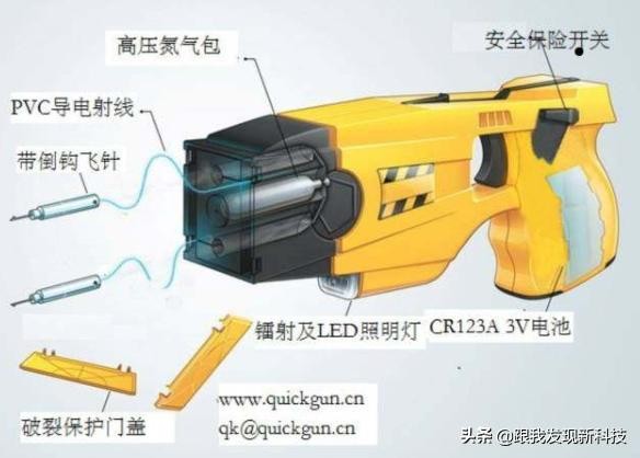 物理学原理:快克枪的技术是采用5万伏高电压19-11次渐变的3.6mA-1.6mA低电流的T形波,来对人体实施高频次的刺激,人的运动神经会短路失效,而其他的神经和器官则不会受到侵害。