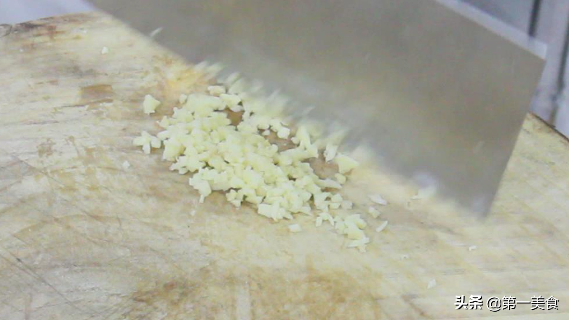 大蒜一小把,拍扁之后切成碎沫,尽量切碎成蒜泥。