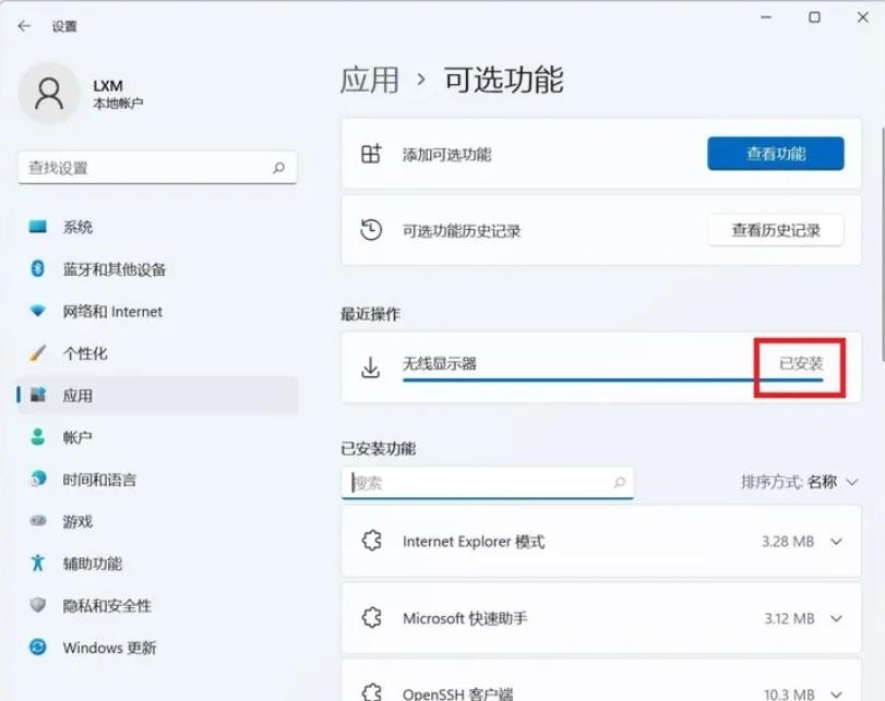 2.点击其中的“可选功能”
