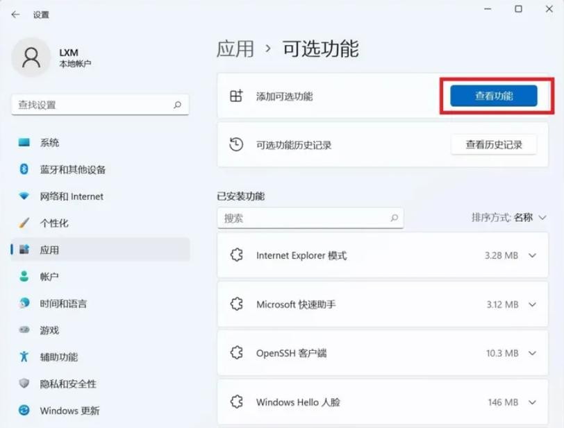 3.在“添加可选功能”中点击“查看功能”