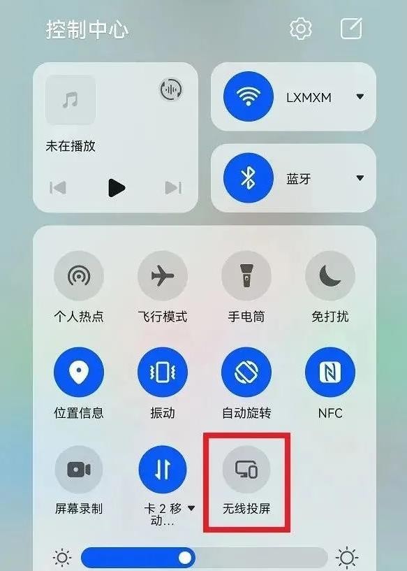 1.首先在手机桌面下拉,在控制中心中找到“无线投屏”,并点击打开。