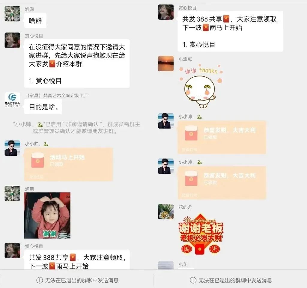 进群后,再安排群成员做一些小任务获得返利,叠加群成员对自己的信任感。