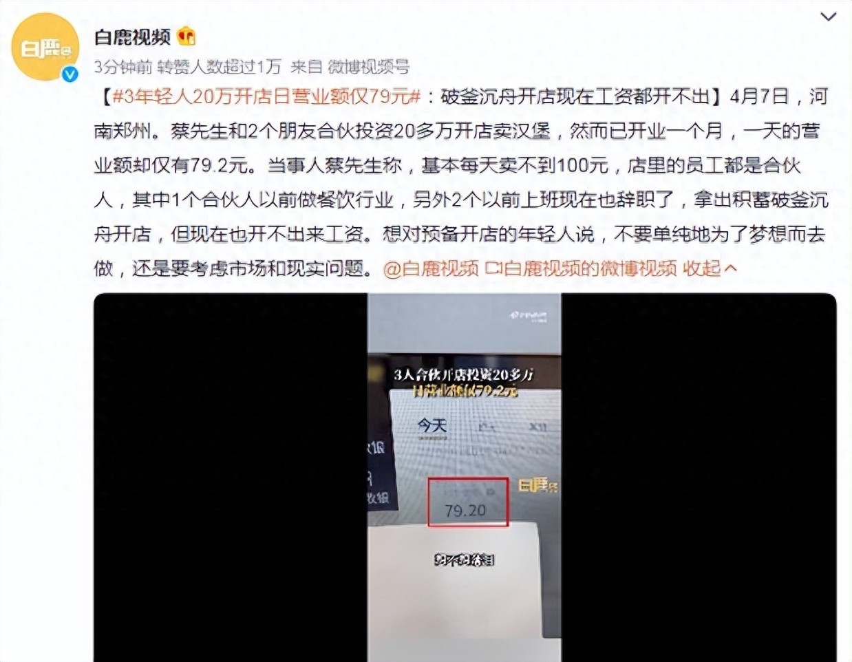 三个年轻人合伙开汉堡店,投资20多万,一天营业额仅79.2元
