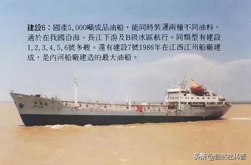 1986年内河船厂建造最大的5000吨级油轮建设7号建成下水。(没有照片,只能用同级别的建设6号代替)
