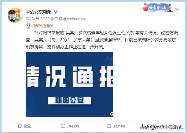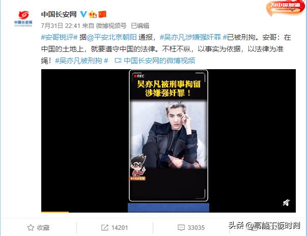 各位观众老爷 ,昨晚突然的一个大瓜打破了夜晚的宁静,@平安北京朝阳 发布了吴亦凡被刑拘的消息,一时间各大官方媒体集体发声估计这次吴亦凡是跑不掉了。