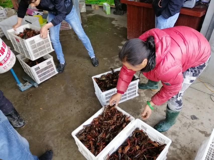 首先,要有心理准备,稻田养小龙虾有一项工作很累人,那就是起捕卖虾。因为虾苗本身大小不一,都是捕大留小,所以不是一天两天就可以卖完的,时间短则10天,长则一个月,而且大家都是习惯吃活虾,一般都是凌晨起床收地笼,天亮前后拉到收购点去卖,收购点分拣好后再装箱发往全国各大批发市场。但是好处是除了起捕卖虾比较繁重,平常也就喂1-2次料,下午喂料的时候放地笼(第二天收笼起捕),工作量并不是太多。