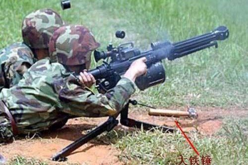 QLZ87在连续射击的时候会出现剧烈晃动,因此三脚架射击时,其前腿驻锄上设有打桩孔,阵地架设时可打入铁桩,以增加三脚架的稳定性,所以会在一些照片中看到榴弹发射器旁还有个铁锤,真是越土越有战斗力。