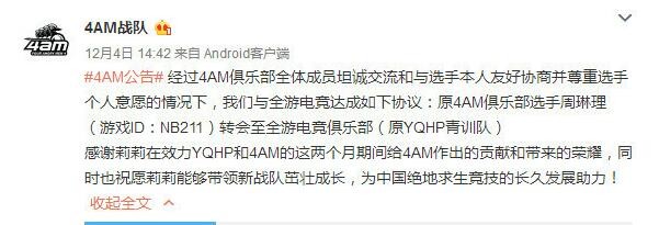 211周莉莉离开4AM战队