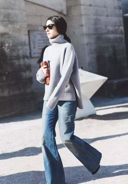 大领口毛衣可以叠搭高领衫摆脱平庸和单调。宽松阔腿裤更是休闲感十足。