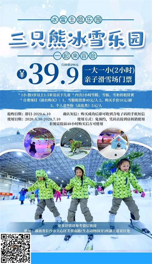 长沙三只熊冰雪王国39.9元门票优惠活动
