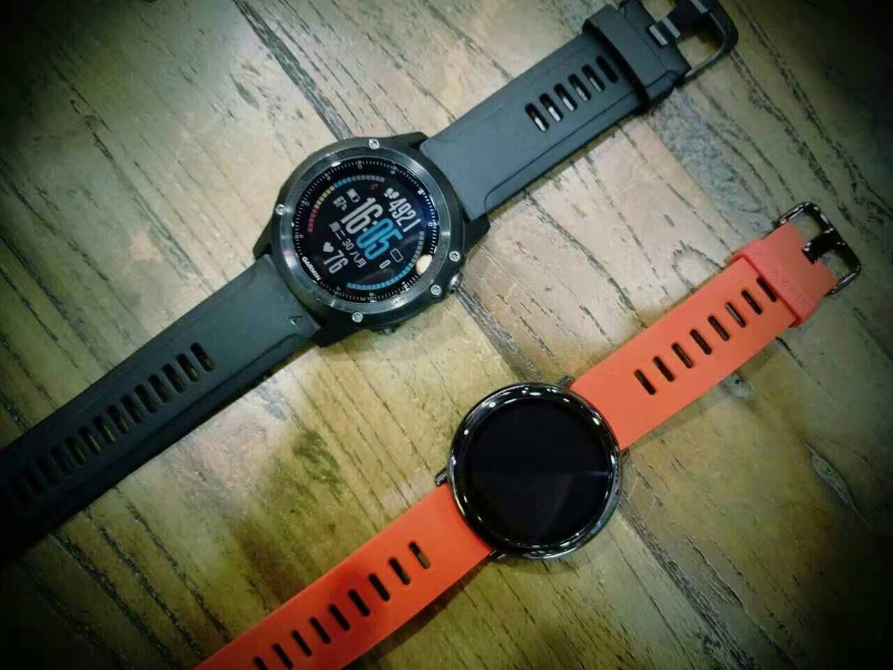 回到今天发布的华米手表,旁边是它眼中的竞品,佳明 FENIX 3 HR,一个799,一个5880!24小时全天显示,心率记步、蓝牙音乐、支付宝、通知提醒常用的功能都有了!当大手环用可以续航11天半!