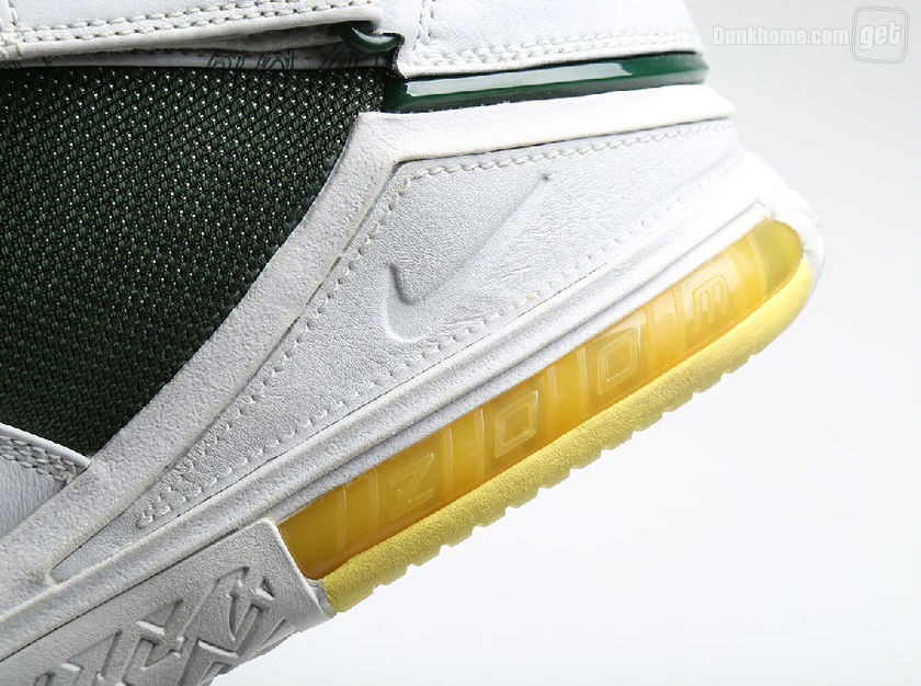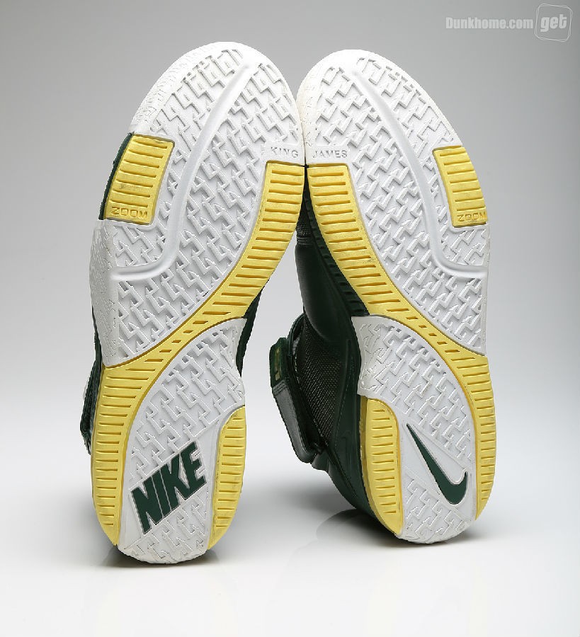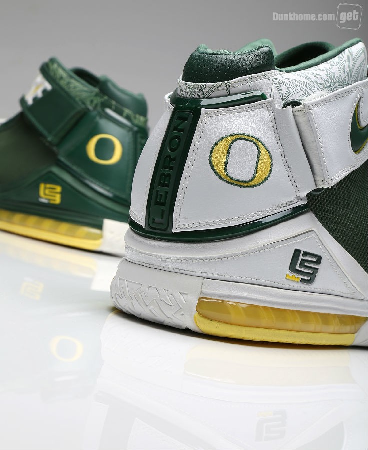 而我们今天所看到的并非是普通的Nike Zoom LeBron 2,因为它打上了“Oregon”的字眼,从它出生那一天起,就已预示着它的不平凡,主场和客场配色都将白,绿,黄定位主基调,两双鞋虽仅仅是颜色面积大小的变化,但给人却给人以一种截然不同的感官体验。