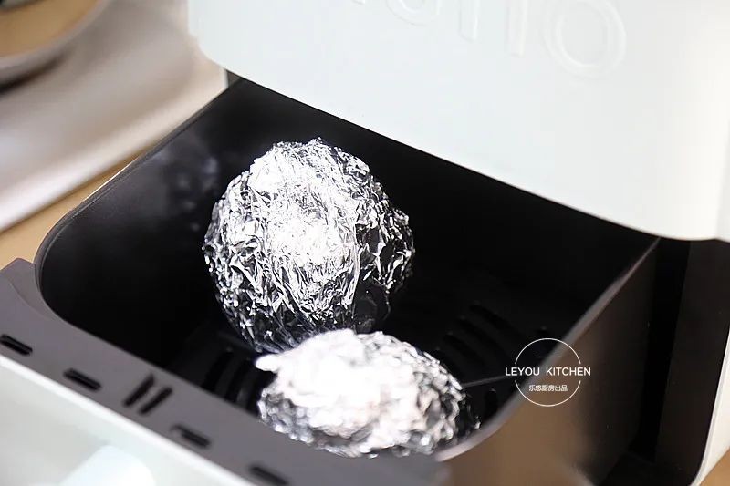 第六步:封口朝上,放入预热好的烤箱,上下火200度烤30分钟。或者放到空气炸锅中,200度烤30分钟就可以了。