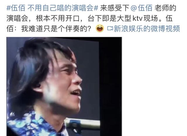 除了这一首歌,在伍佰演唱《浪人情歌》、《爱你一万年》的时候,也同样受到了这样的“待遇”。看到这样的视频,很多网友都笑翻了,笑言:“伍佰老师实在太可怜了,演唱会自己都不能唱歌,难道他只是个吉他伴奏?” 也有人猜想伍佰老师的内心活动:“怎么办?我插不上嘴了,我彻底变成一个伴奏了!”热议纷纷之下,“伍佰 不用自己唱的演唱会”把低调的伍佰送上了热榜。