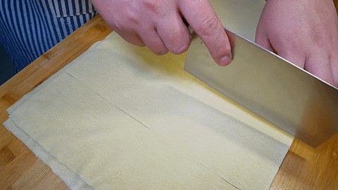 1.买回来的豆皮是一整张,先清洗干净,洗去表面的灰尘和杂质,然后把豆皮切成宽条。