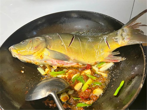 1.为了保持鱼的完整性,煎鱼的时候只煎一面就可以.切成z字花刀,可以保证鱼能入味。