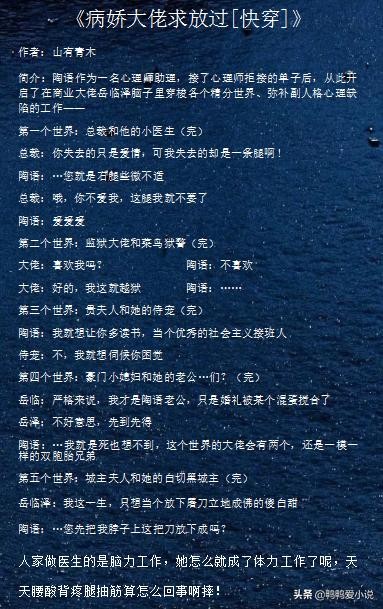 男主是病娇的快穿文:《穿成男主白月光怎么破》《撩尽天下病娇》