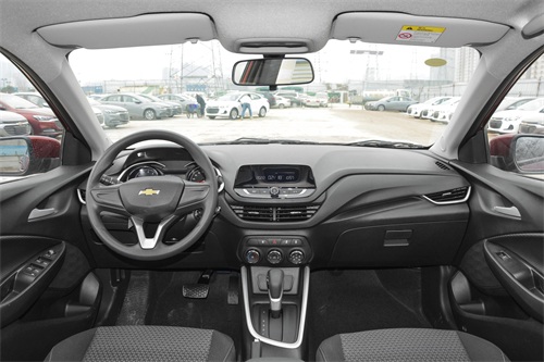 雪佛兰科沃兹内饰方面中控台上方采用大面积搪塑材料包裹,往下仪表台部分采用一块3.5英寸非全液晶仪表搭配塑料材质的普通方向盘,中间采用没有屏幕只有一个收音机,下方为空调控制区域,整个内饰看起来就比较单调了。