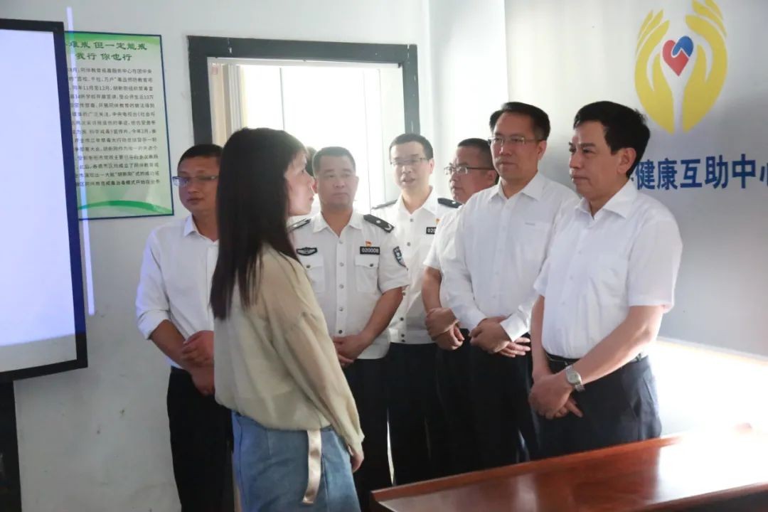 首先,杨琪君同志一行来到了位于石鼓区角山镇的市同伴戒毒康复学校,实地察看了学校音乐室、健身房、阅览室、多媒体教室、心理咨询室、医疗室等功能室,听取了负责人胡新刚关于学校有关情况的汇报,详细了解了学校创办、运行、管理、效果等。他指出,衡阳禁毒工作特色鲜明、亮点突出、成效显著,特别是市、区共建,创新成立同伴戒毒康复学校,让吸毒人员自愿、主动地戒毒,让戒毒人员重拾尊严、坚定信心回归融入社会的模式值得肯定与推广。他强调,要进一步抓好细节工作,优化学校空间布局,丰富禁毒教育内容,切实为禁毒教育工作发挥重要作用;并叮嘱学校负责人要坚守初心、砥砺前行,在党委政府帮助下、在社会各界关心下,走出一条具有自身特色、帮助更多吸毒人员自愿戒毒的成功之路。
