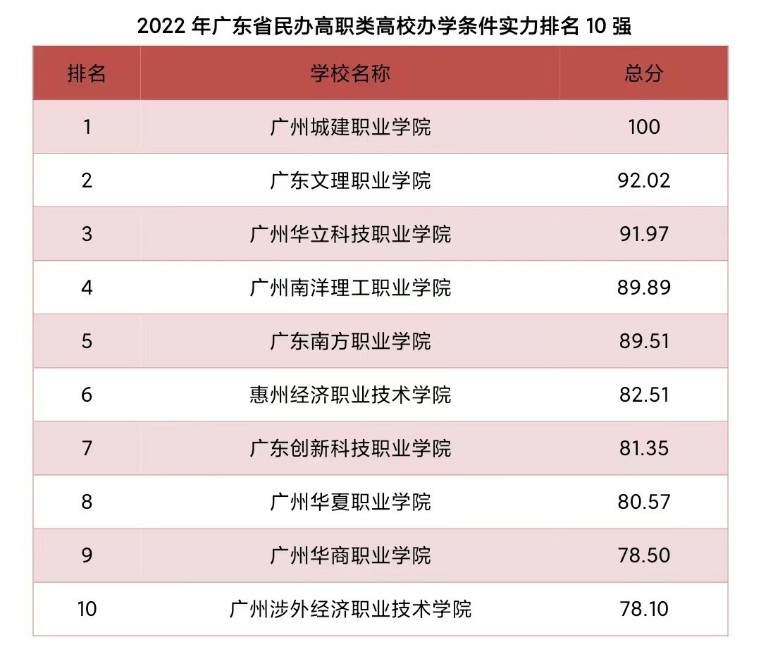 日前,广东省教育统计学会编撰发行《2022广东省民办高校办学条件实力排名及其指标》,公布2022年广东省内民办高校办学条件排名前列的院校。其中,广东文理职业学院在省民办高职类办学条件实力排名第二。
