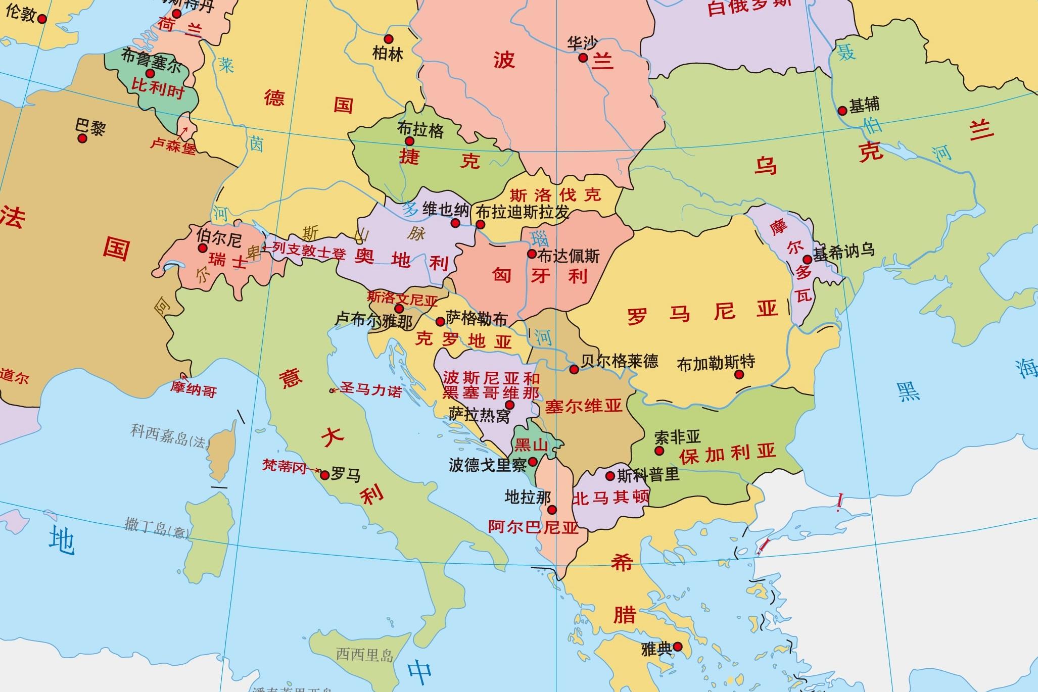 一条河流能够流经多少个国家,除了流程长短外,还要看在它前进的方向上分布着多少国家,如果国家面积小而且数量多,那么河流就有可能流经更多国家。
